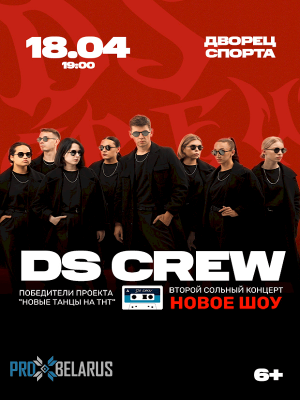 Став победителями телевизионного проекта "НОВЫЕ ТАНЦЫ на ТНТ", они моментально влюбили в себя миллионы россиян! Синхронная плавность движений гипнотизирует и вдохновляет, заставляя поклонников снова и снова пересматривать выступления этой невероятной танцевальной команды. За прошедший год DS CREW в рамках своего первого гастрольного тура выступили более чем в ста городах России и ближнего зарубежья, а число посетивших их концерты зрителей перевалило отметку в 100.000 человек.